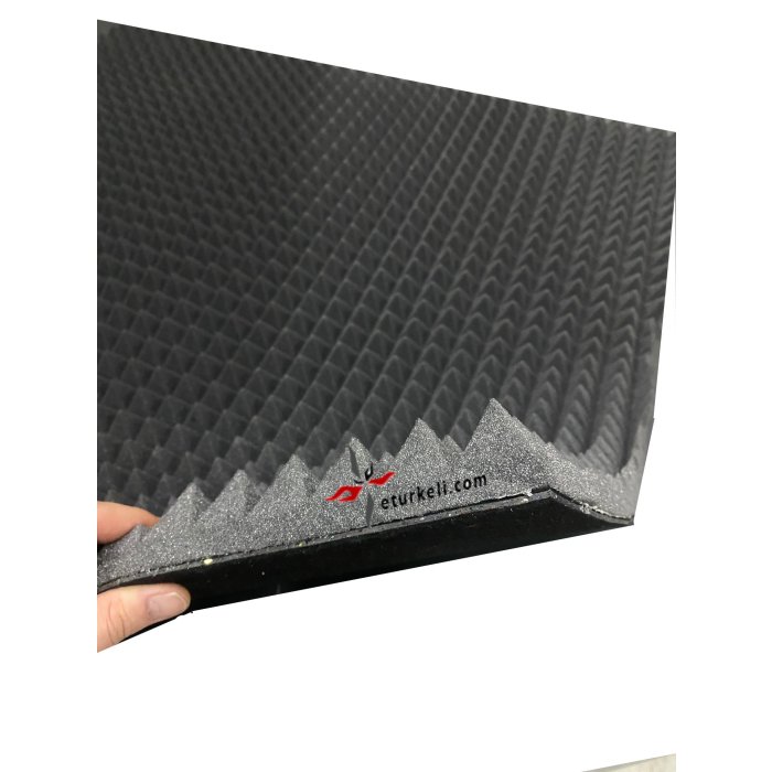 TÜRKELİ - SES YALITIMI BARİYERLİ PİRAMİT SÜNGERİ 43mm 100X100 Ürünümüz 60 dns yumurta süngerinin üzerine